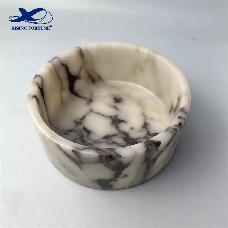 Introducing calacatta viola marble water bowl, this dog bowl is designed to be durable, sturdy, and easy to clean. It is made from high-quality materials, which are resistant to contamination and difficult to move around.Natural Calacatta Violet marble features intertwined deep and light purple veins paired with soft white streaks—each bowl boasts a one-of-a-kind grain pattern, just like a natural work of art.